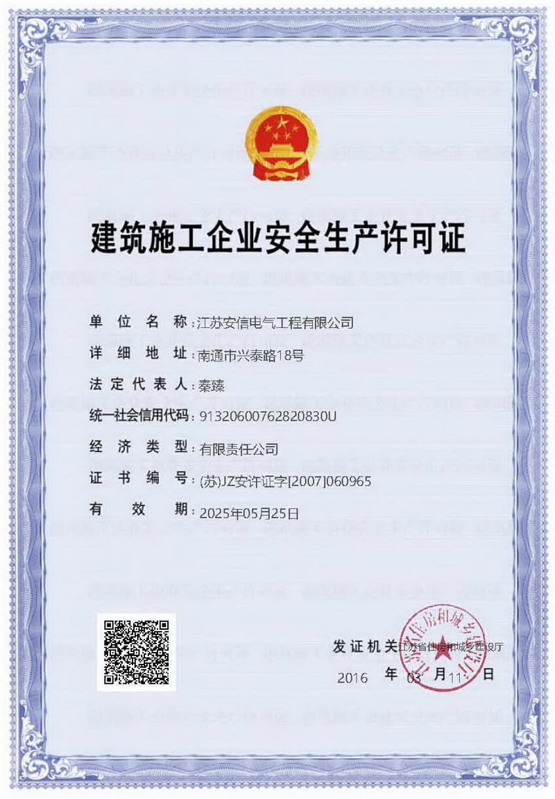 承裝二級、承修二級、承試二級,電力工程施工總承包二級,輸變電工程專業(yè)承包二級,建筑工程施工總承包二級,建筑機(jī)電安裝專業(yè)承包二級,地基基礎(chǔ)專業(yè)承包二級